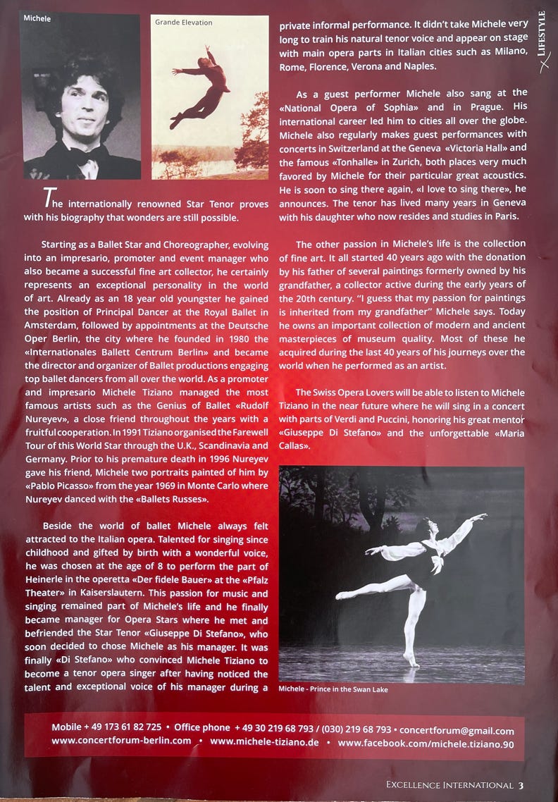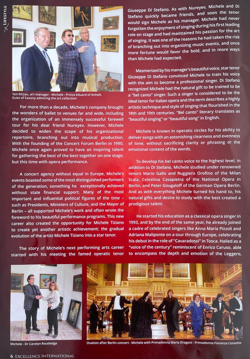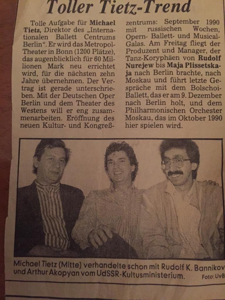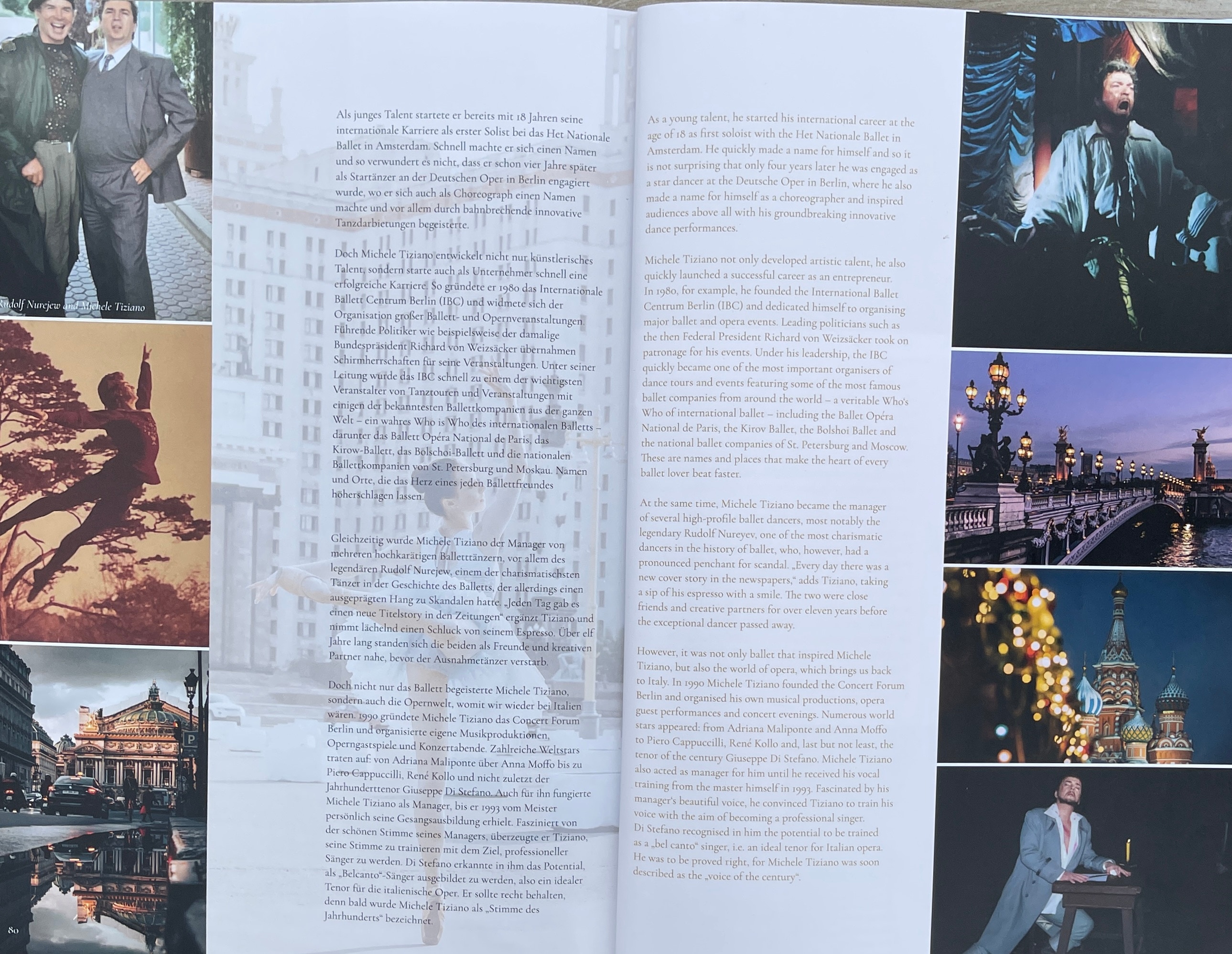 1980 entwickelte sich der Wunsch, eigene Ballett-Tourneen zu organisieren. Dazu begründete Michele Tiziano das Internationale Ballett Centrum Berlin (IBC). Weltstars wie Maja Plissezkaja, Maria Brissonskaya, Nadia Pavlova, Margot Fonteyn, Paolo Bortoluzzi und Rudolf Nurejew sowie die gesamte deutsche Ballettelite der damaligen Zeit konnte er für seine Veranstaltungen gewinnen. Gemeinsam mit zahlreichen internationalen Ballettcompagnien organisierte Tiziano Gastspiele und Tourneen. Dazu gehören das Ballett Opéra National de Paris, das Kirow-Ballett, das Bolschoi-Ballett, das Ballett der Staatsoper Hamburg, das St. Petersburger Staatsballett, das Staatsballett Moskau, das Königlich Flandrische Ballett Antwerpen, das Ballet Royal de Wallonie oder auch das Ballett des Akademischen Nationaltheaters für Oper und Ballett in Sofia.