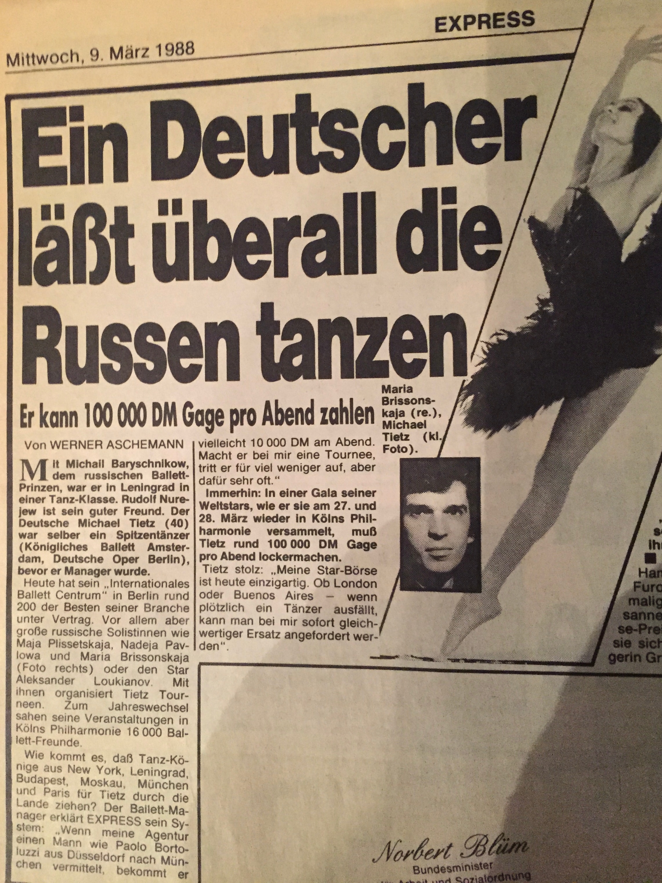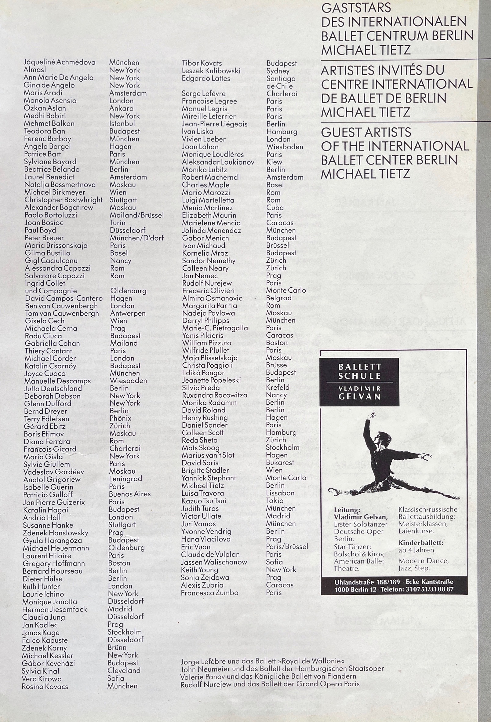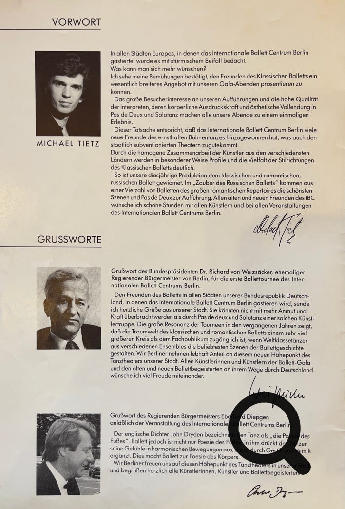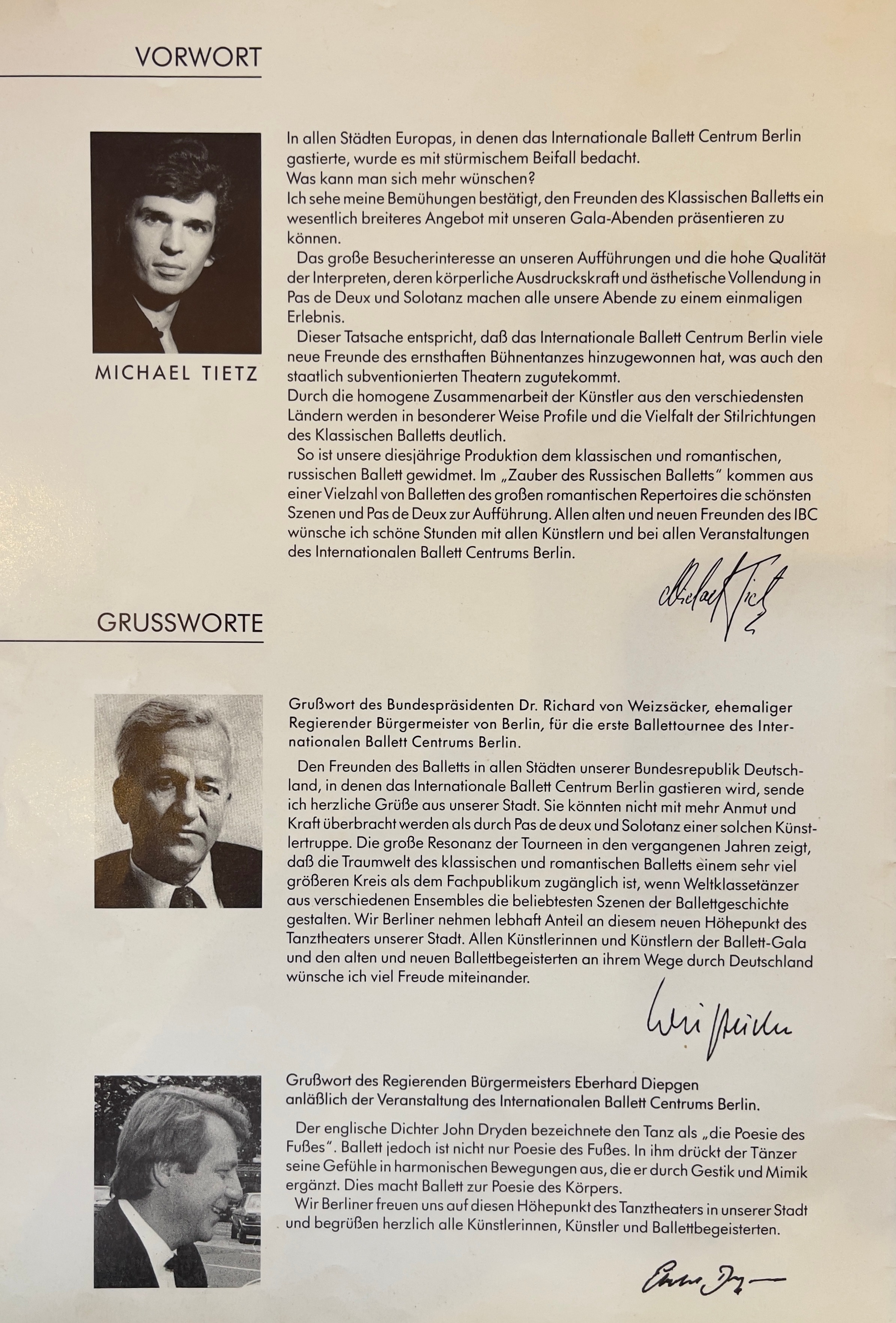 1980 entwickelte sich der Wunsch, eigene Ballett-Tourneen zu organisieren. Dazu begründete Michele Tiziano das Internationale Ballett Centrum Berlin (IBC). Weltstars wie Maja Plissezkaja, Maria Brissonskaya, Nadia Pavlova, Margot Fonteyn, Paolo Bortoluzzi und Rudolf Nurejew sowie die gesamte deutsche Ballettelite der damaligen Zeit konnte er für seine Veranstaltungen gewinnen. Gemeinsam mit zahlreichen internationalen Ballettcompagnien organisierte Tiziano Gastspiele und Tourneen. Dazu gehören das Ballett Opéra National de Paris, das Kirow-Ballett, das Bolschoi-Ballett, das Ballett der Staatsoper Hamburg, das St. Petersburger Staatsballett, das Staatsballett Moskau, das Königlich Flandrische Ballett Antwerpen, das Ballet Royal de Wallonie oder auch das Ballett des Akademischen Nationaltheaters für Oper und Ballett in Sofia.