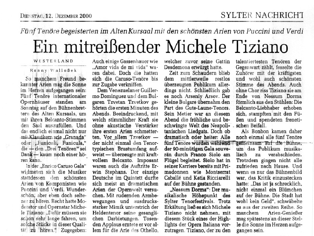 „Das Tenorfach war bestens durch Michele Tiziano vertreten, der die Arie des