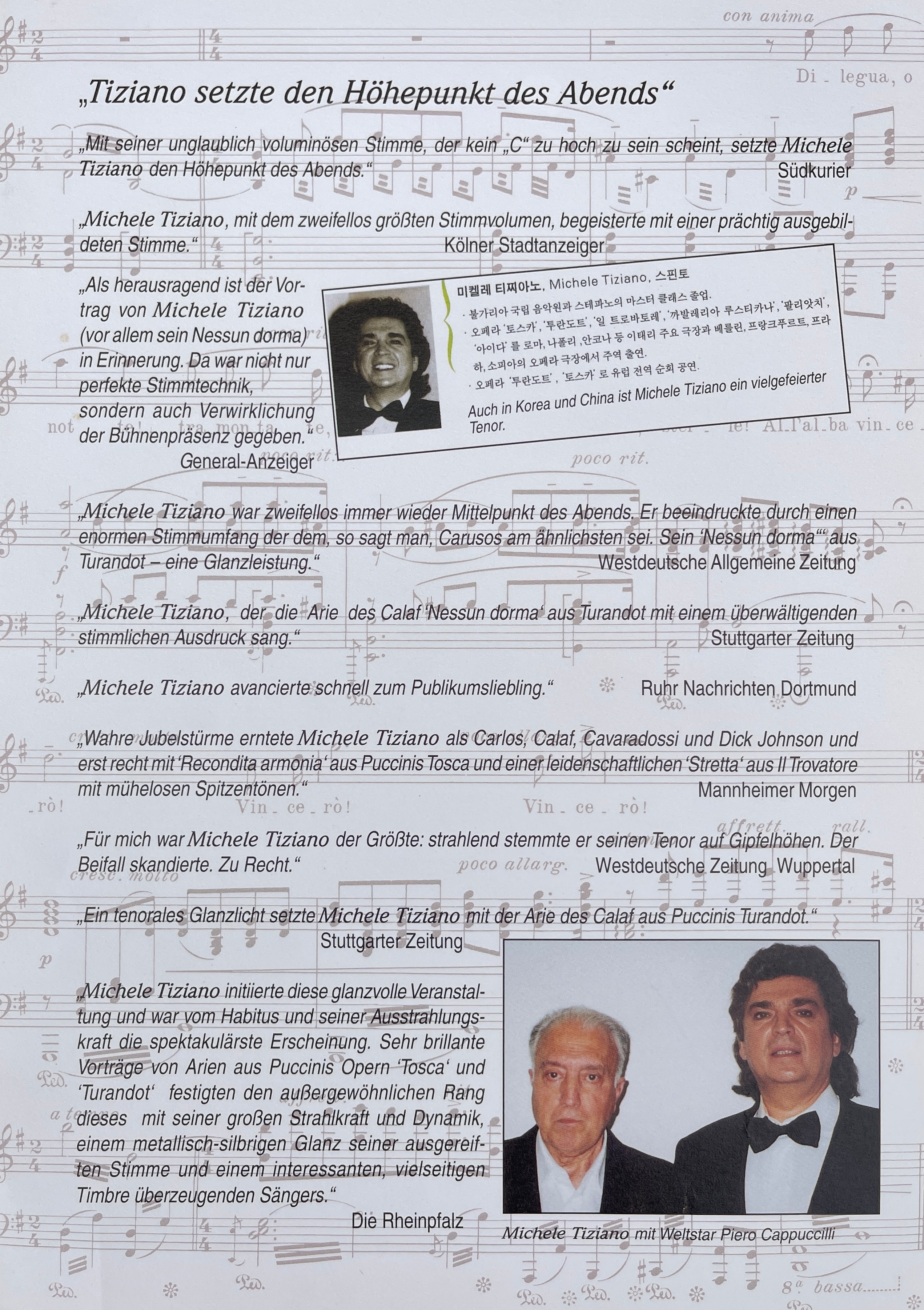 „Michele Tiziano fasziniert mit einer großen Tenorstimme und ist in Aussehen und